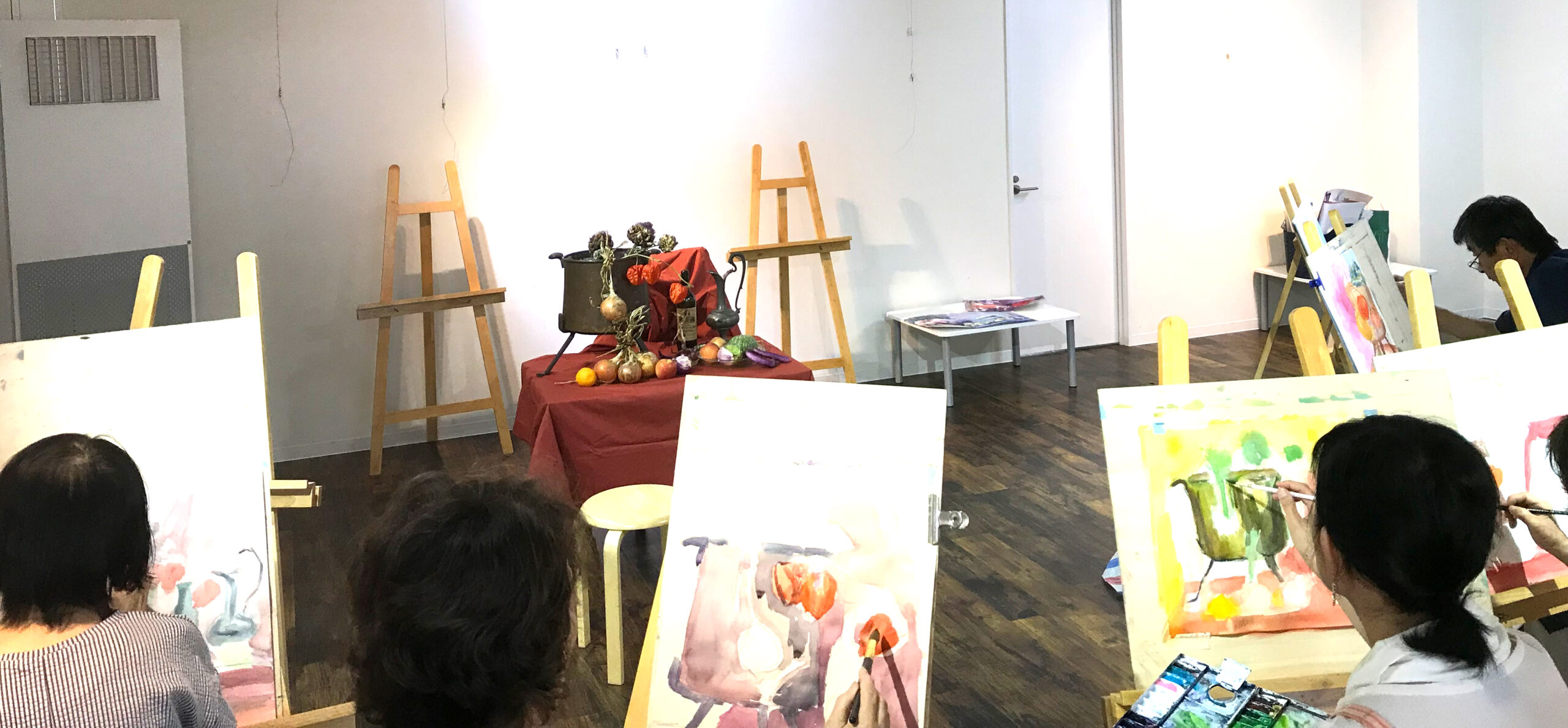 与野教室では東京教室同様に水彩パステルの混合技法と油彩DUOを合わせて学ぶことが出来ます
