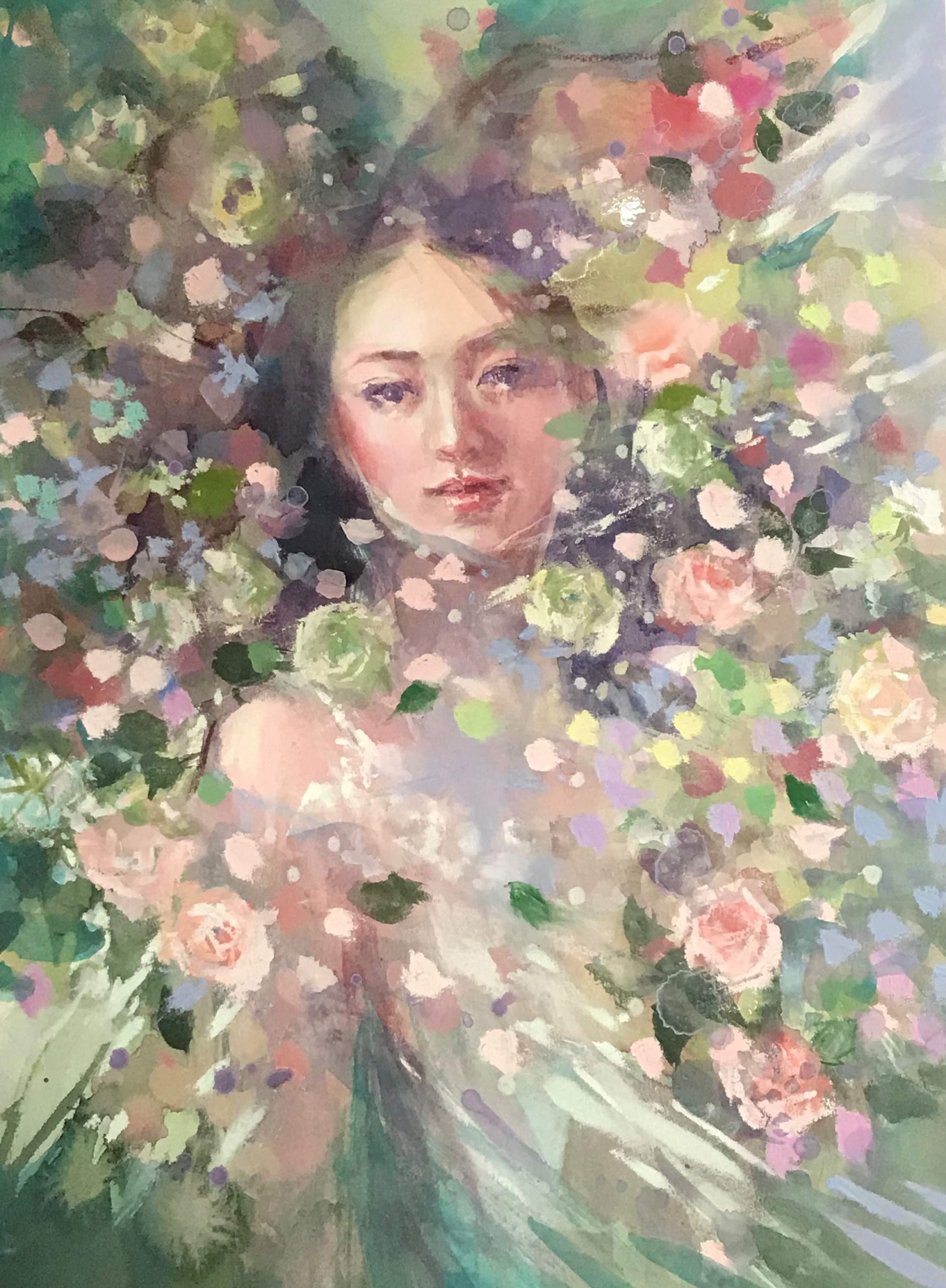 4「フローラの目覚め」¥308,000(税込) / 水彩・パステル / 20号(作品サイズ・54/72cm)
