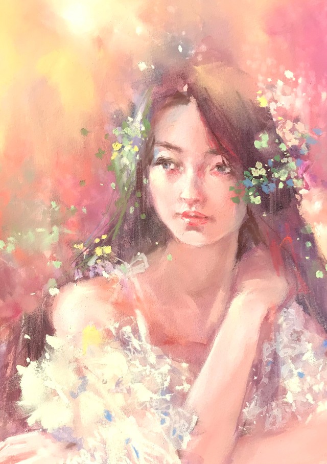 今回のオンライン作品展「彩の時」は、村田旭の新作絵画もご用意しています。特に今回は「オンディーヌシリーズ」や「フローラシリーズ」など、人物画を数多く揃えています。