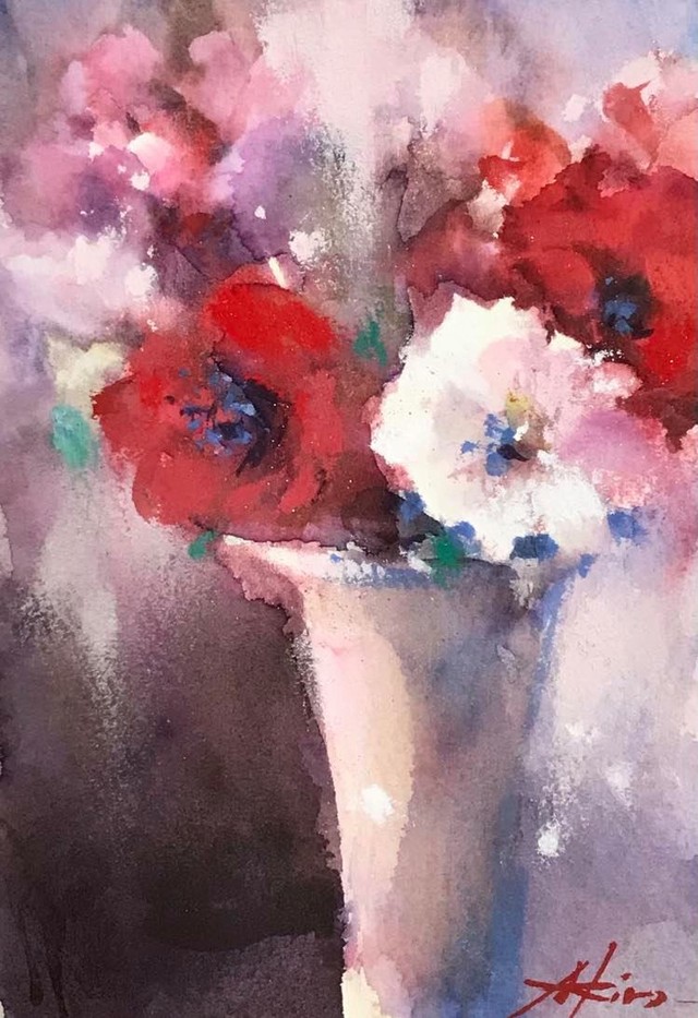 アネモネは”愛の象徴の花”。ギリシャ神話の愛と美の女神「アフロディーテ」が流した涙から生まれたとも言われています。ビビッドな赤色が印象的で、飾るだけでお部屋全体が明るくなりそうな絵画です。